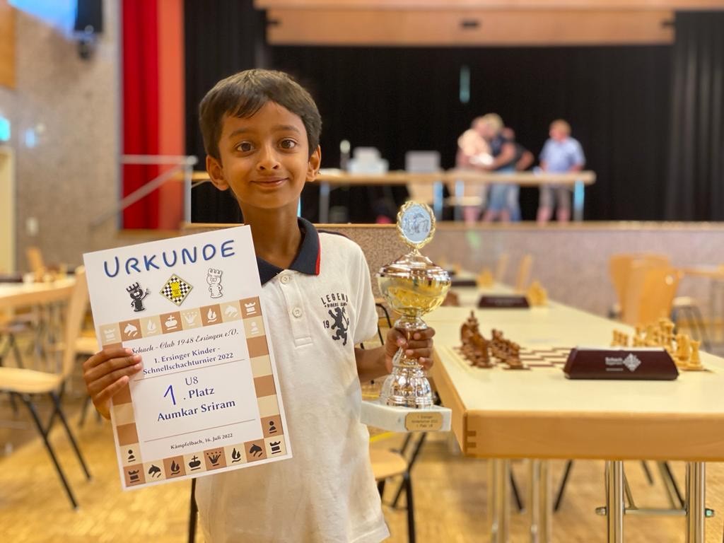 Am 16.07.2022 fand in Ersingen ein Kinderschnellschachturnier statt. Mit am Start war Aumkar, der mit seinen 6 Jahren den 1.Platz