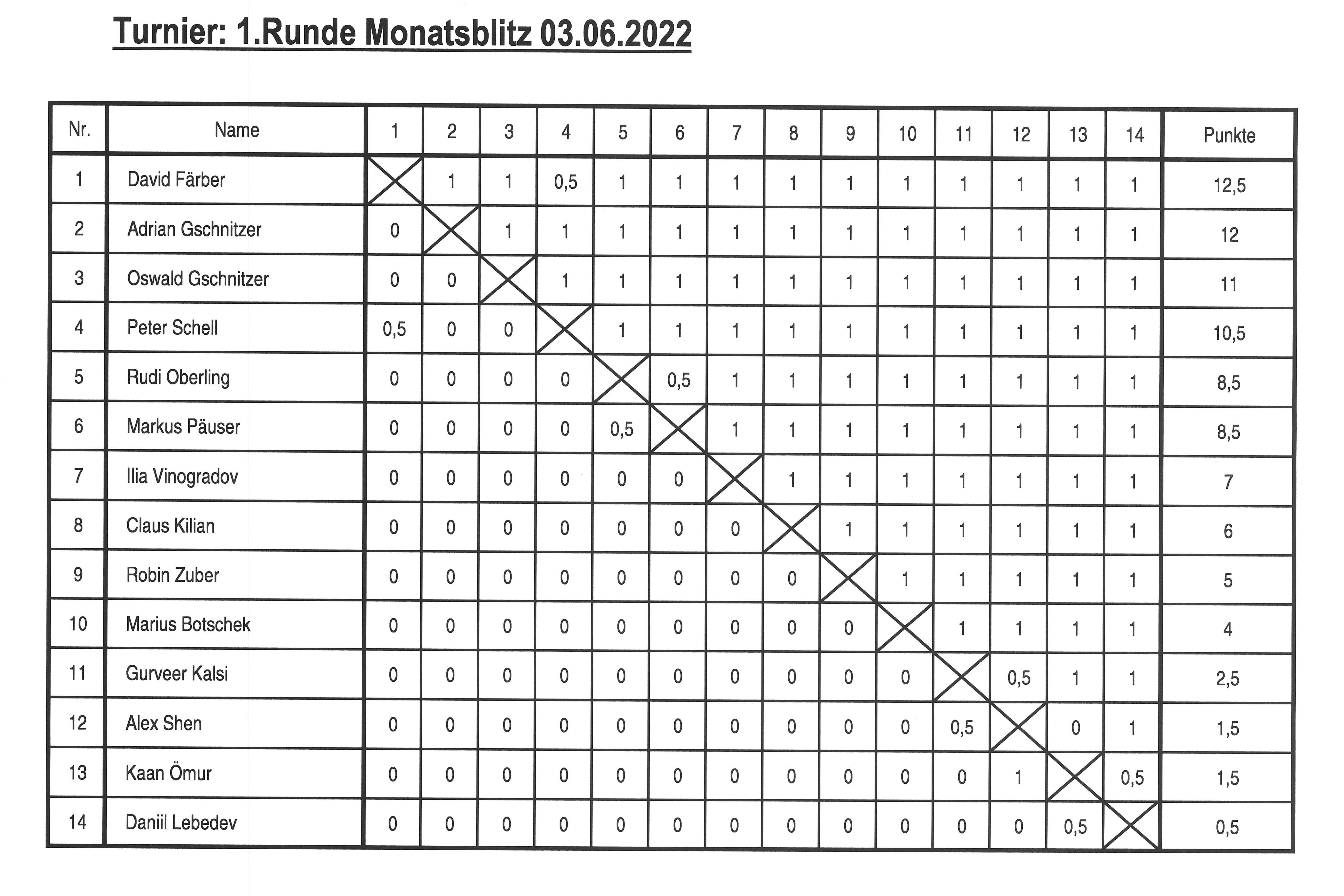 Endlich, es ging mal wieder was am Schachabend. 14 Spieler hatten sich am Freitag zum Monatsblitz eingefunden.