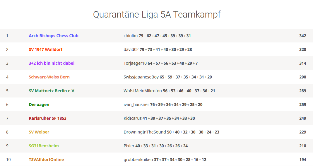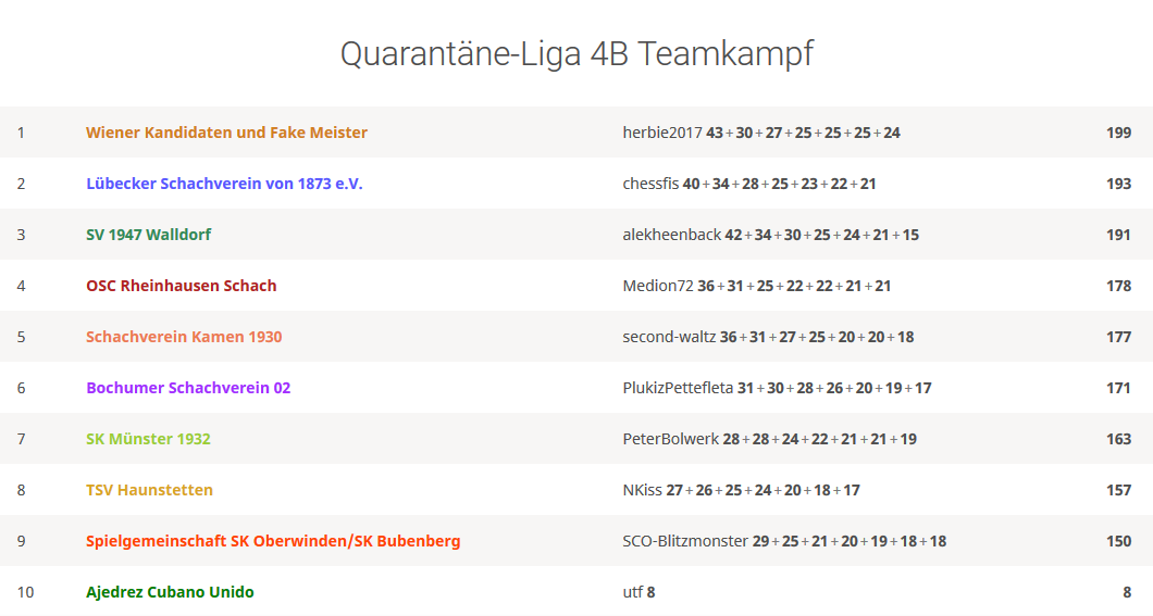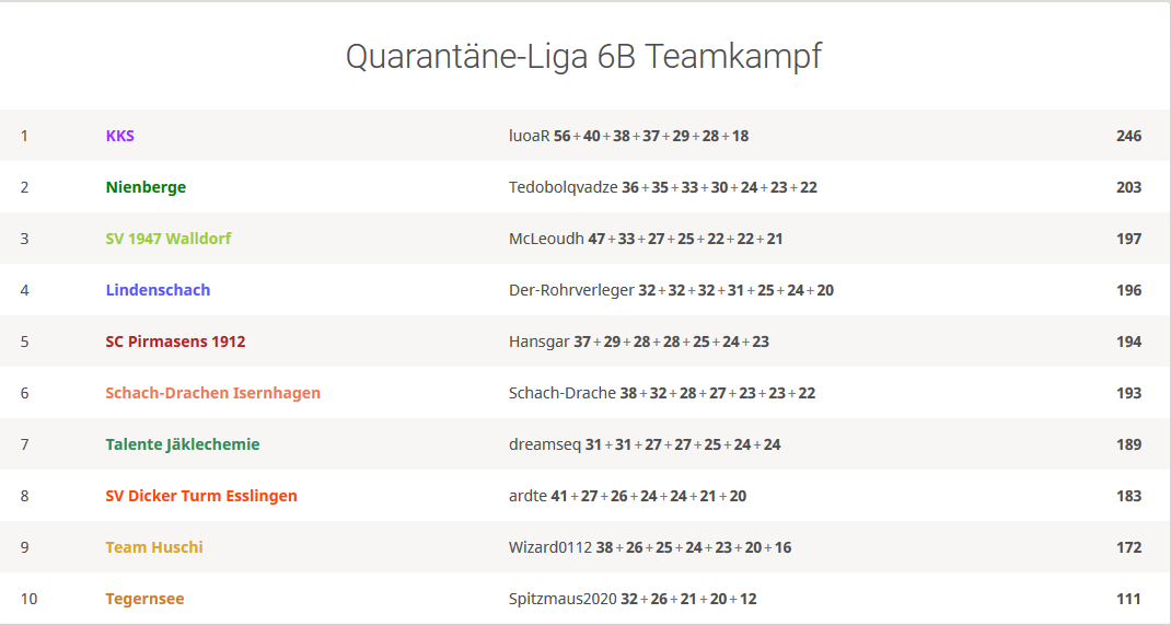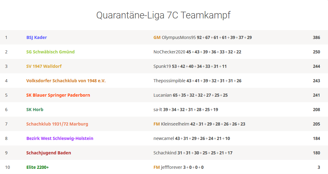wir mit 244 Punkten Rang 3, nur 6 Punkte hinter Schwäbisch Gmünd, aber ein Punkt vor dem Volksdorfer Schachklub aus Hamburg und