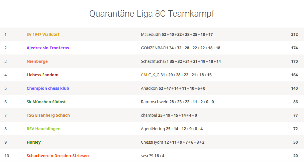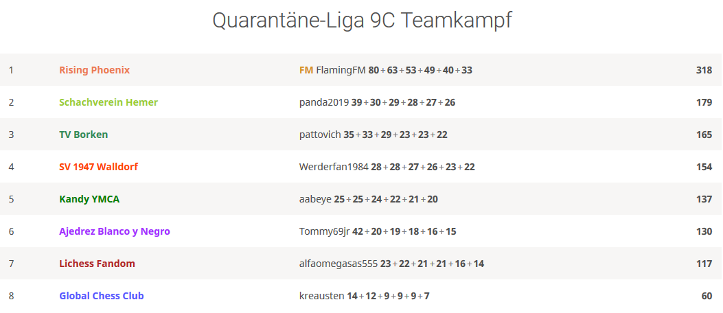 Auf Lichess.org gibt es eine Quarantäne-Liga, da sind wir am Sonntag in die unterste Klasse (9.Liga)